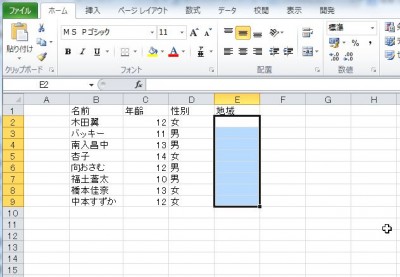 例では、「北海道,東北,関東,中部,近畿,中国,四国,九州」を入力している。